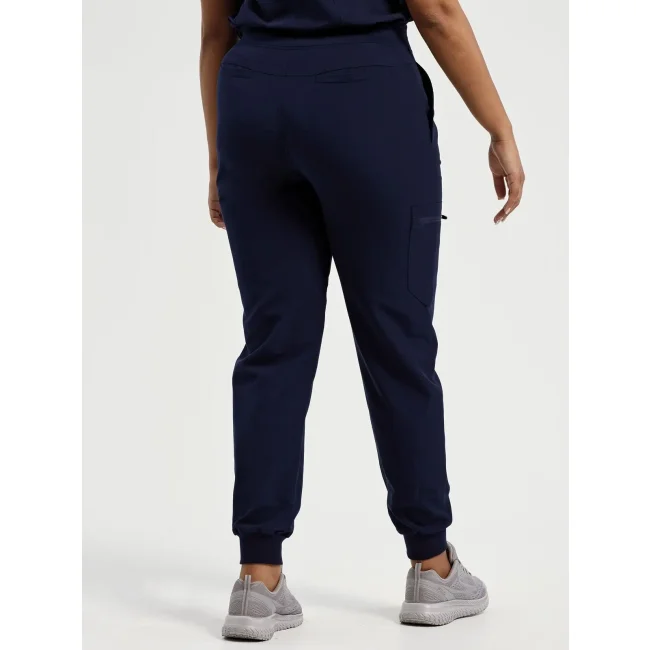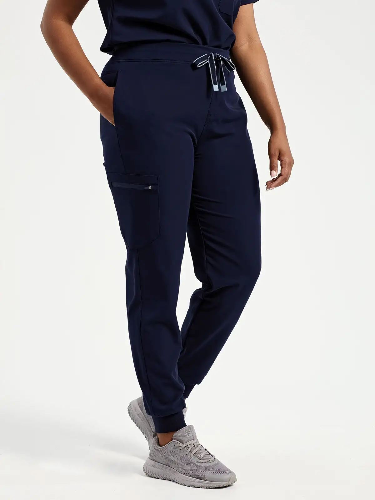 42% Poliestere, 33% Poliestere riciclato, 19% Viscosa, 6% Elastan. Pantaloni jogger da donna in tessuto traspirante elasticizzato in 4 direzioni per assicurare comfort e libertà di movimento durante tutto il giorno, tessuto resistente, ingualcibile e easy care, coulisse elasticizzata in vita e finta patta, varie tasche con zip e per riporre il cellulare, polsini a costine alle caviglie.