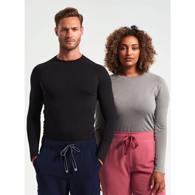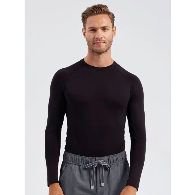 50% nylon riciclato, 50% nylon.. Maglia a maniche lunghe da uomo in tessuto traspirante elasticizzato in 4 direzioni, fresco, da indossare sotto la divisa sanitaria, tessuto resistente, ingualcibile e easy care, l'estratto di menta piperita offre una finitura deodorante naturale, corpo senza cuciture con esclusivo motivo jacquard.