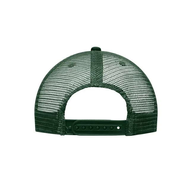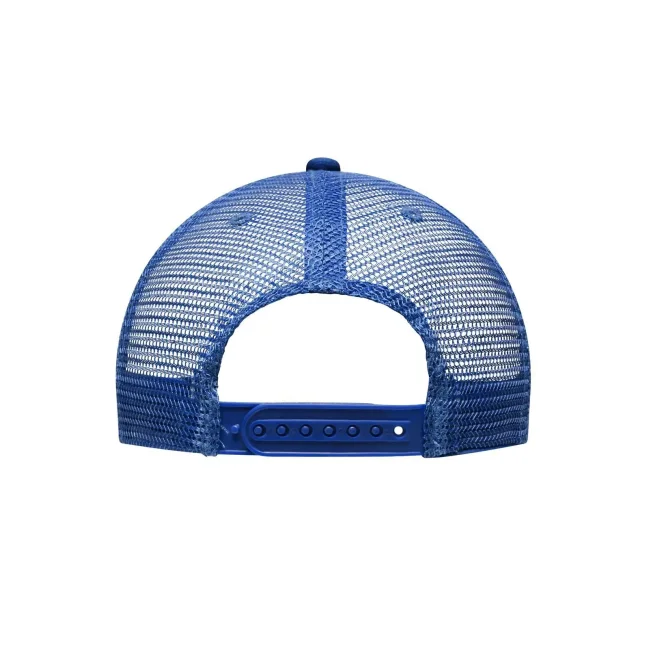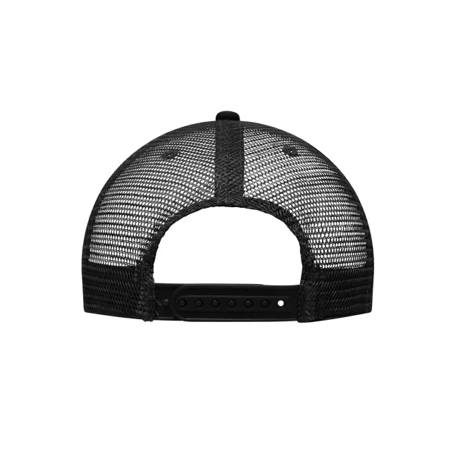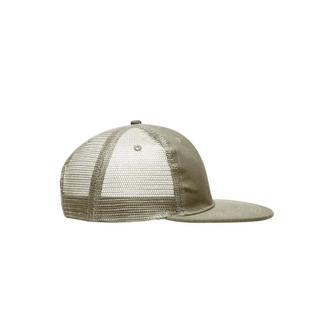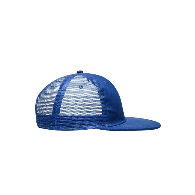 Mesh: 100% poliestere, Visiera e pannello frontale: 100% cotone. Cappello a rete a 6 pannelli con visiera piatta 6 cuciture decorative sulla visiera, 6 fori di aerazione ricamati, Fascetta tergisudore in cotone, Etichetta sulla visiera, Regolazione taglia con chiusura ""click & snap"", Cotone spazzolato.