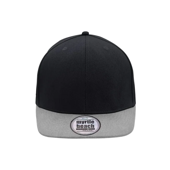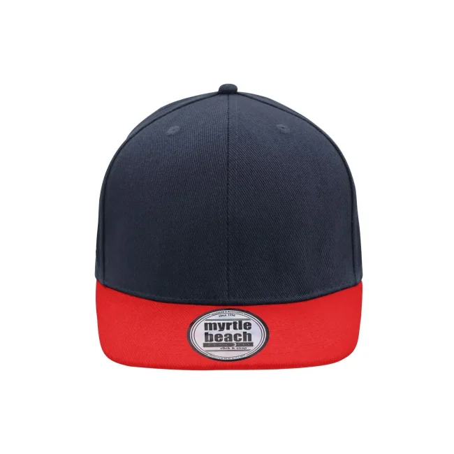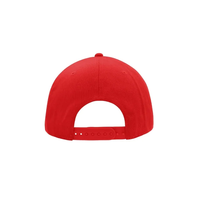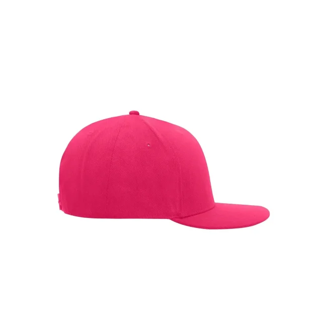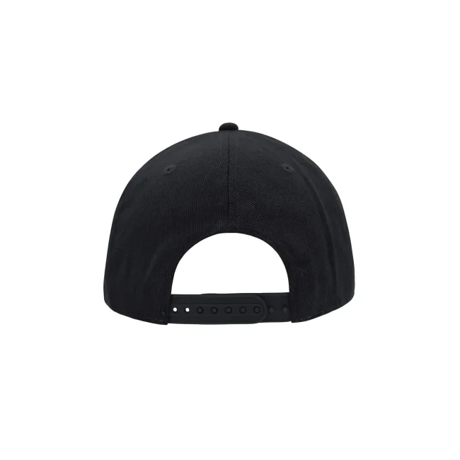 100% cotone. Berretto Streetstyle. Pregiata forma ""High Profile"", Visiera piatta con 8 adesivi e 6 cuciture decorative, 6 pannelli con 6 fori per l'aria in maglia, Pannelli anteriori laminati, Massimo comfort grazie alla fascia anteriore imbottita. Chiusura regolabile ""click & snap"".