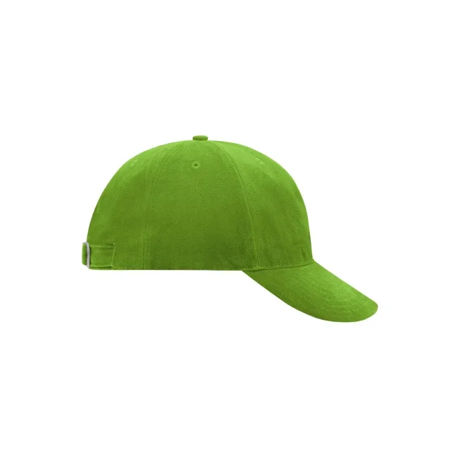100% cotone. Cap di alta qualità a 6 pannelli con leggera laminatura per ricamo semplice 6 fori traspiranti imbastiti. 8 cuciture decorative sulla visieraPannelli frontali leggermente laminati. Fascetta tergisudore imbottita in Satin, Fibbia in metallo argentata con bottone a pressione e asola in stoffa, Cotone spazzolato forte.
