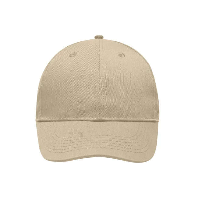 65% poliestere, 35% cotone. Cappellino 6 pannelli di qualità Robusto, resistente tessuto misto, 6 fori per l'areazione ricamati, 6 cuciture sulla visiera, Pannelli frontali laminati, Fascia tergisudore imbottita per un comfort ottimale, Chiusura a clip in argento opaco con asola in metallo.