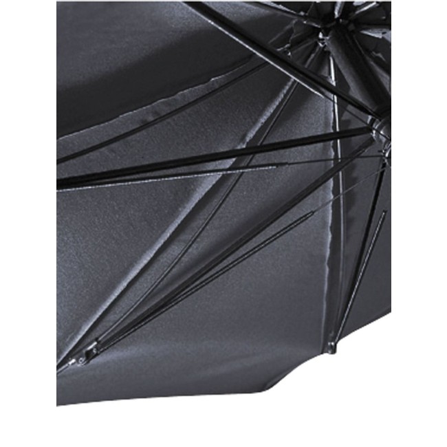 Fodera rivestita dall'esterno con fattore di protezione dalla luce UPF 50+, bastone in alluminio leggero ma stabile, confortevole funzione automatica per aprire rapidamente, stecche in fibra di vetro flessibili, pregiato sistema Windproof per la massima flessibilità del telaio in caso di forti raffiche di vento e fodera idrofuga e autopulente grazie all'originale rivestimento in tessuto DuPont™ Teflon, manico color alluminio con materiale morbido nero e possibilità di applicazione della pubblicità. Diametro: 105 cm, lunghezza da chiuso: 83 cm, 8 pannelli.