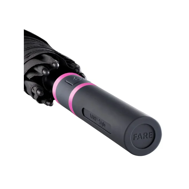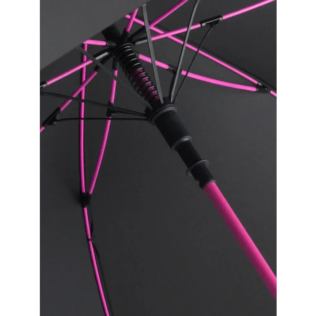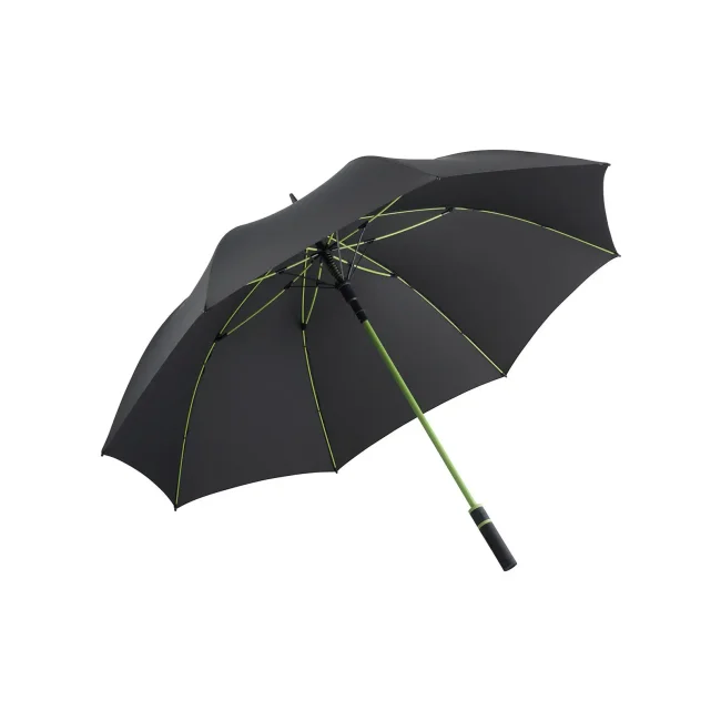 Comoda funzione automatica per l'apertura rapida, sistema antivento di alta qualità per la massima flessibilità del telaio in condizioni tempestose, stecche flessibili in fibra di vetro, stabile asta in acciaio con tubo in plastica colorata, materiale pongee in poliestere realizzato con plastica riciclata, ecologico grazie al materiale di copertura originale waterSAVE, esclusiva impugnatura dritta Soft-Feel con anelli colorati e doppia possibilità di etichettatura promozionale. Diametro: 130 cm, lunghezza da chiuso: 101 cm, 8 pannelli.