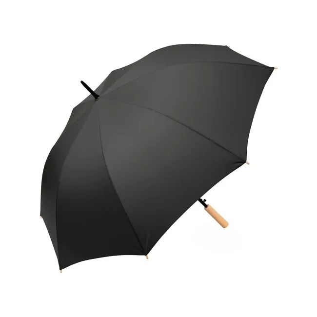 100% Poliestere pongee. Ombrello ad ampio diametro con fodera in plastica riciclata WaterSave® ed elementi in vero legno, apertura automatica, sistema Windproof, stecche flessibili in fibra di vetro, tessuto della fodera waterSAVE®, etichetta waterSAVE® sul nastro di chiusura, punte e manico dritto in vero legno con possibilità di personalizzazione. Diametro ombrello: 120 cm, lunghezza chiuso: 95 cm, 8 pannelli.