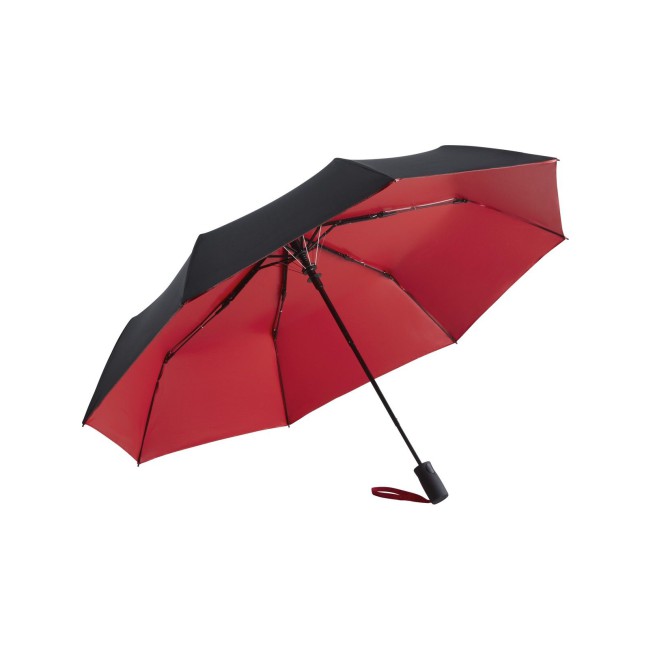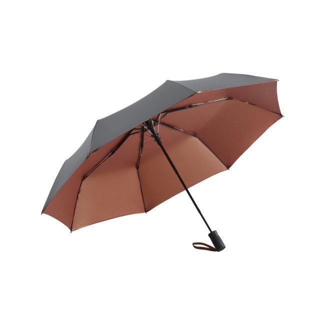 Copertura: 100% poliestere pongee, manico: plastica, asta: acciaio. Ombrello con apertura automatica, sistema antivento, rivestito internamente per proteggere dal sole (UPF 50+), impugnatura colorata Soft-Touch con pulsante integrato e opzione di etichettatura promozionale. Diametro: 100 cm, lunghezza da chiuso: 31 cm, 8 pannelli.