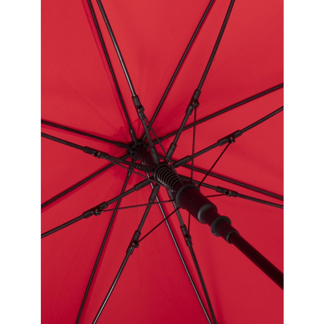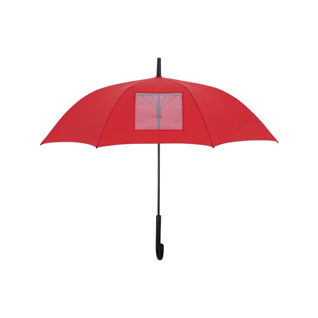 Copertura: 100% poliestere pongee, manico: plastica, asta: metallo. Ombrello-bastone automatico con finestra trasparente su uno spicchio, sistema Windproof, stecche in fibra di vetro flessibili, parte superiore e impugnatura con possibilità di personalizzazione, in soft touch, elevata protezione dalla corrosione grazie alla galvanizzazione nera del bastone. Diametro: 105 cm, lunghezza da chiuso: 88 cm, 8 pannelli.