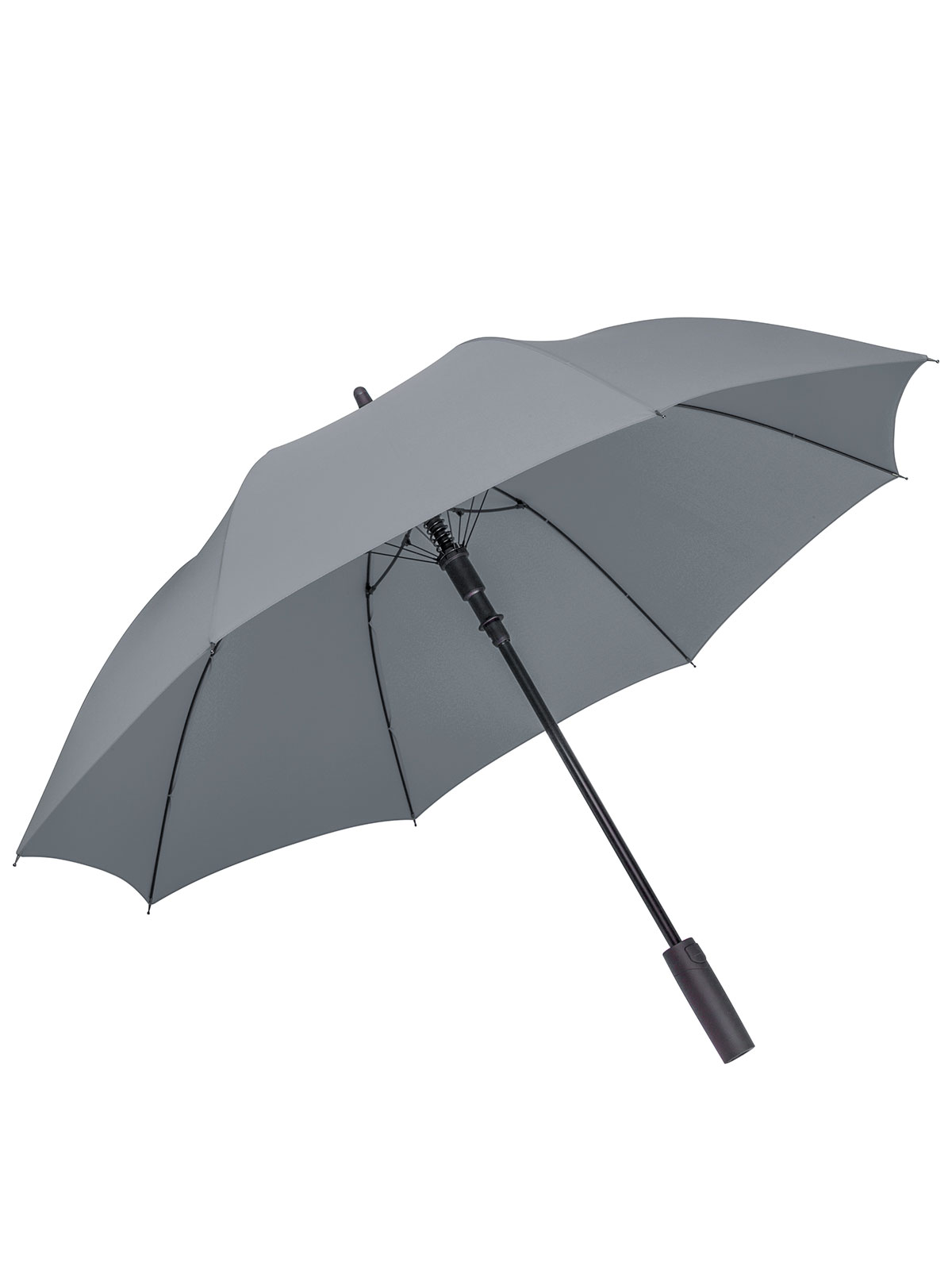 Copertura: 100% poliestere pongee. Manico: Plastica. Asta: Acciaio. Ombrello con apertura automatica, sistema Windproof, stecche in fibra di vetro flessibili, galvanizzazione nera del manico in acciaio per protezione dalla corrosione, manico soft feel con tasto di azionamento integrato e possibilità di applicazione di pubblicità. Diametro: 105 cm, lunghezza: 80,50 cm, 8 pannelli.