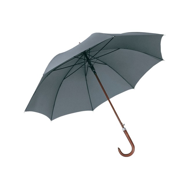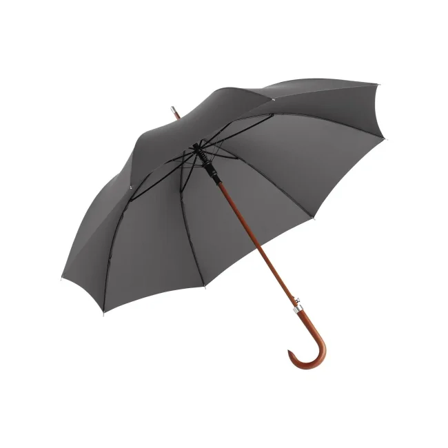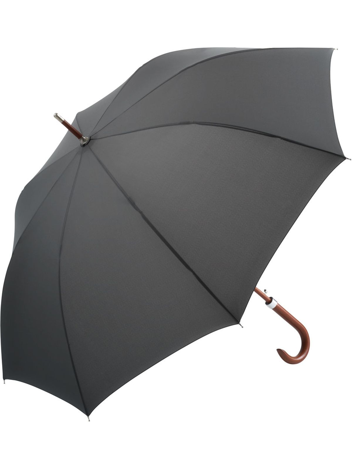 Bastone in vero legno massiccio marrone scuro, confortevole funzione automatica per un'apertura rapida, stecche in fibra di vetro flessibilità, proprietà Windproof per un'elevata stabilità del telaio e una migliore resistenza contro il vento, proprietà della fodera idrofughe e autopulenti grazie al rivestimento in tessuto DuPont™ Teflon® originale, bellissimo manico a forma di uncino tondeggiante in vero legno. Diamero: 120 cm, lunghezza da chiuso: 100 cm, 8 pannelli.