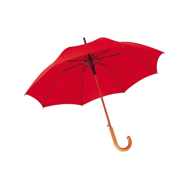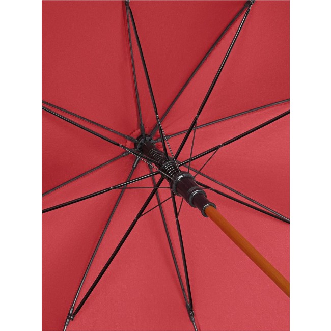 Vero legno massiccio, confortevole funzione automatica per un'apertura rapida, stecche in fibra di vetro flessibili, proprietà Windproof per un'elevata flessibilità del telaio e migliore sicurezza antivento, impugnatura a uncino tondeggiante in vero legno. Diametro: 105 cm. Lung hezza da chiuso: 88 cm, 8 pannelli.