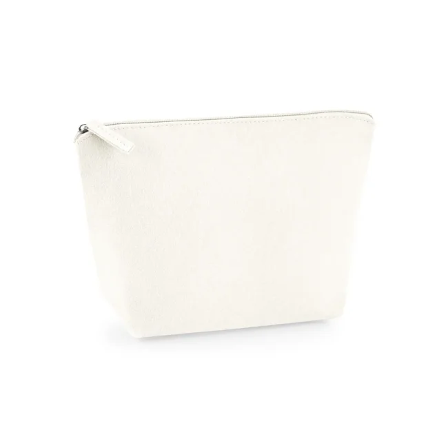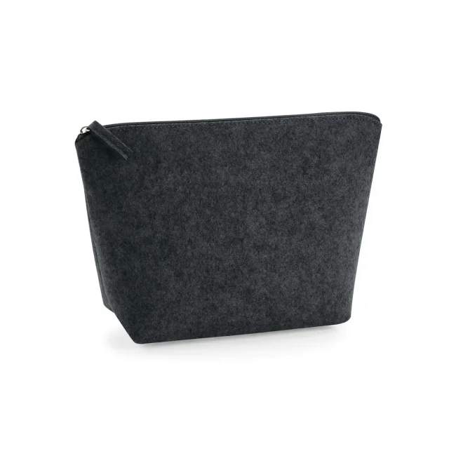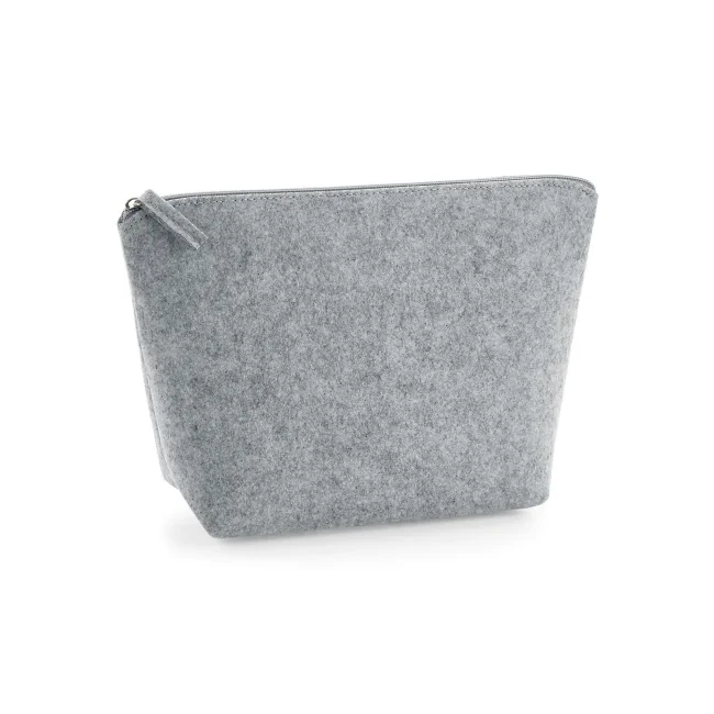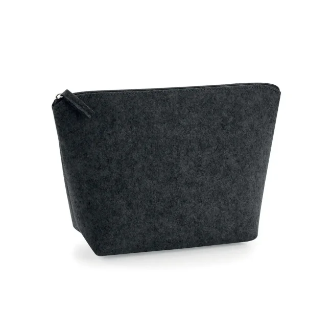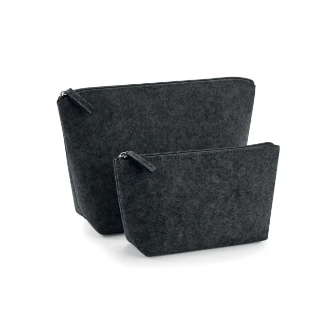 Accessory bag multiuso in poliestere feltro, dotata di chiusura a zip dello stesso colore e etichetta removibile. Disponibile in due misure: S (16x12.5x6 cm, capacità 1 litro) e M (19x18x9 cm, capacità 3 litri), con aree stampabili rispettive di 14x10 cm e 17x16 cm, perfette per personalizzazioni.
