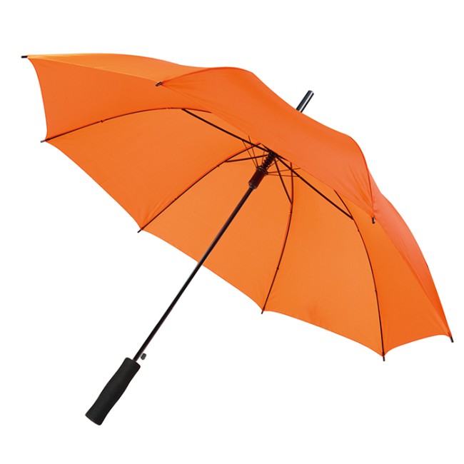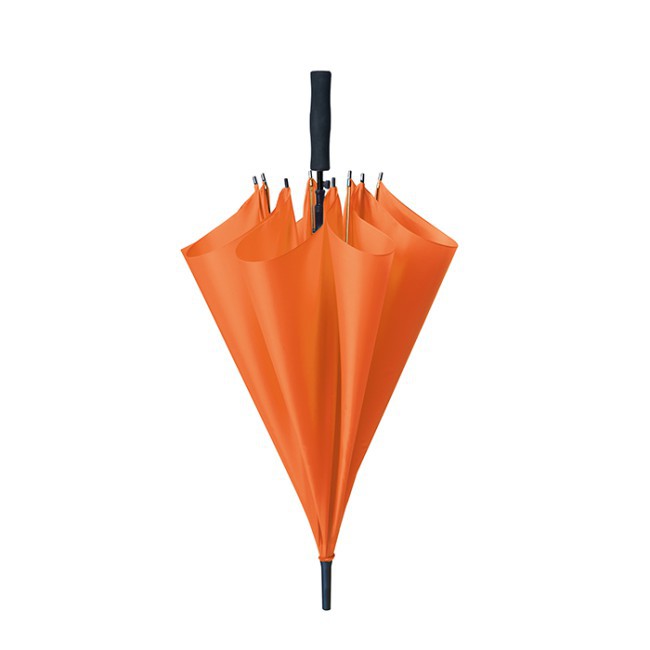 ombrello automatico sistema di apertura con meccanica di alta qualità struttura in fibra di vetro alta resistenza fusto in metallo puntale in plastica nera manico in eva chiusura con velcro tecnica di stampa consigliata: serigrafica - sublimatica (BI) - transfer