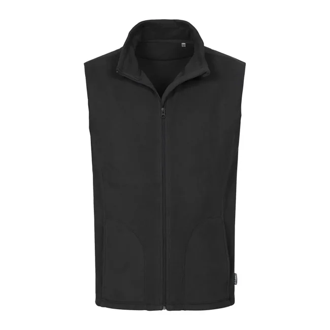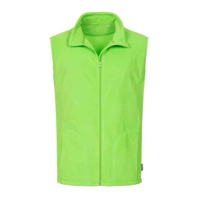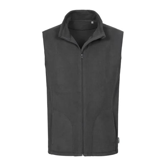 100% poliestere anti-pilling. Pile micro-fleece smanicato, con zip intera tono su tono, struttura con cuciture laterali e due tasche frontali. Cordino aggiustabile in vita.