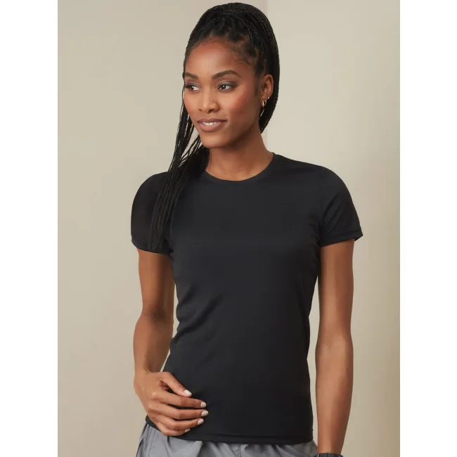 100% poliestere Active-DRY°. T-shirt sportiva da donna a maniche corte con taglio set-in, progettata per garantire comfort e libertà di movimento. Dotata di logo catarifrangente sul retro del collo per una maggiore visibilità, etichetta strappabile per un comfort senza irritazioni e struttura con cuciture laterali per una vestibilità ottimale. Perfetta per l’attività sportiva e il tempo libero.