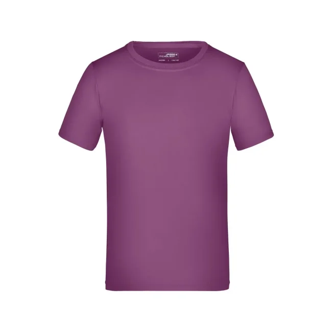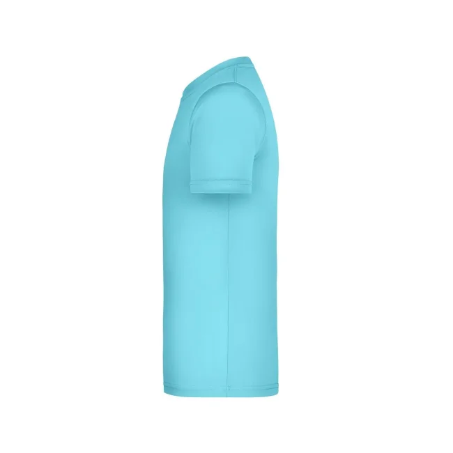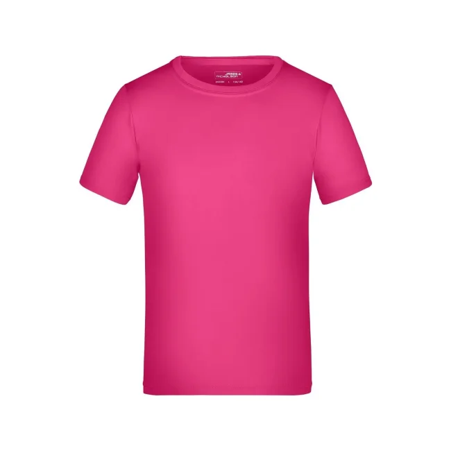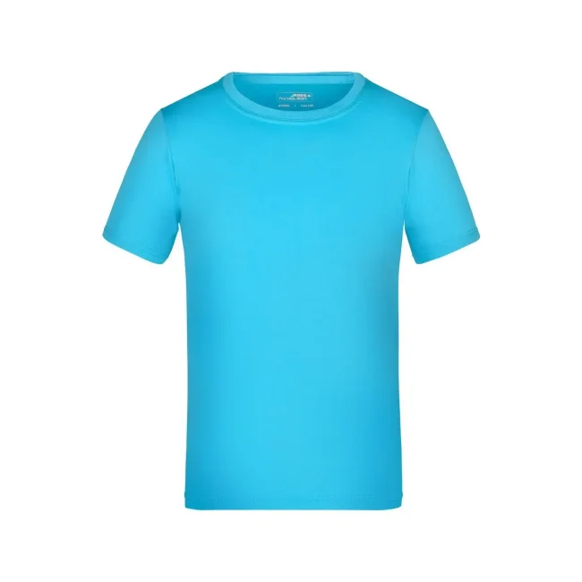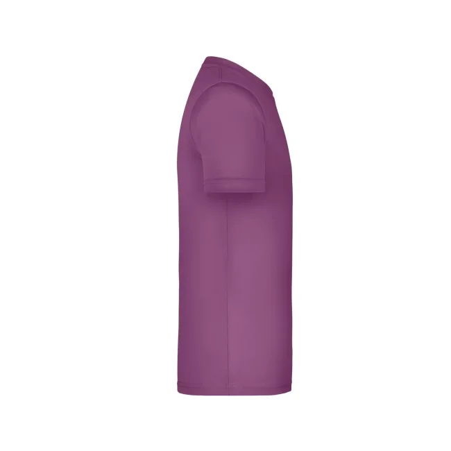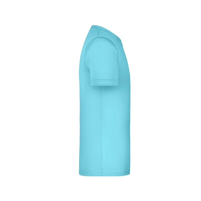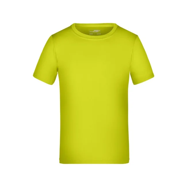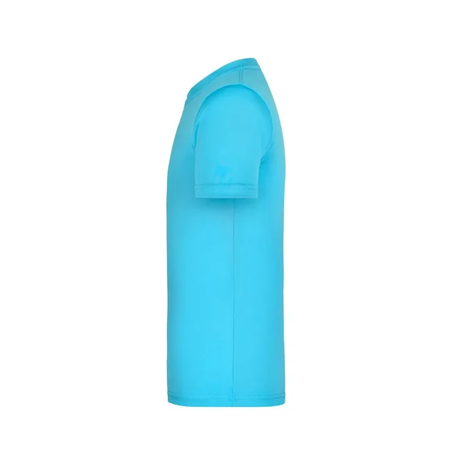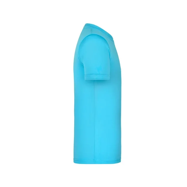 100% poliestere. T-shirt per tempo libero e sport single jersey con parasudore, cuciture doppie su spalle, collo e giro manica, traspirante, con regolazione umidità, asciugatura rapida. Tessuto esterno (150 g/m²). Manica corta, collo rotondo.