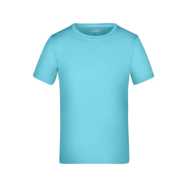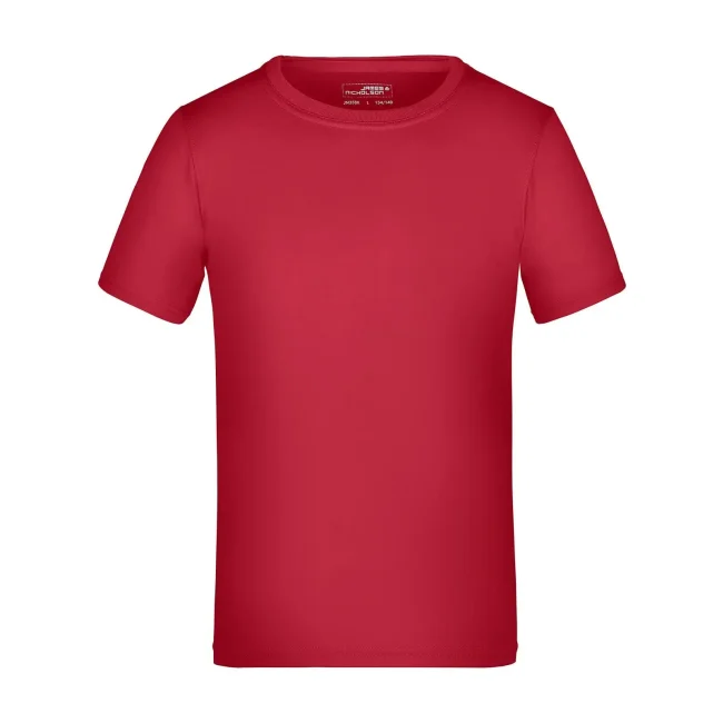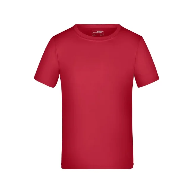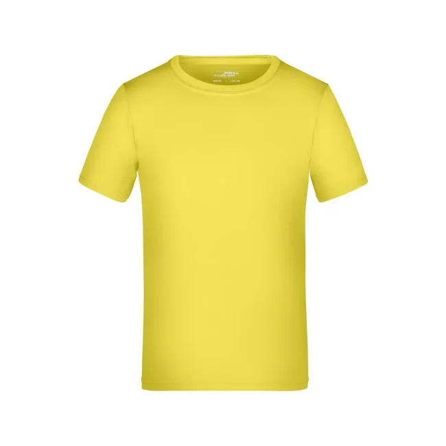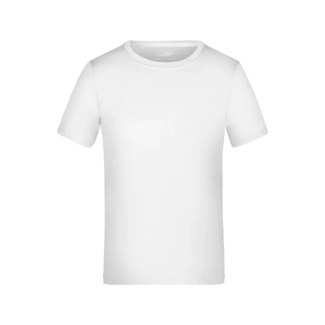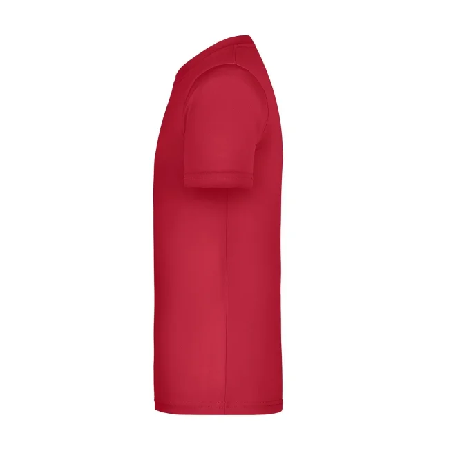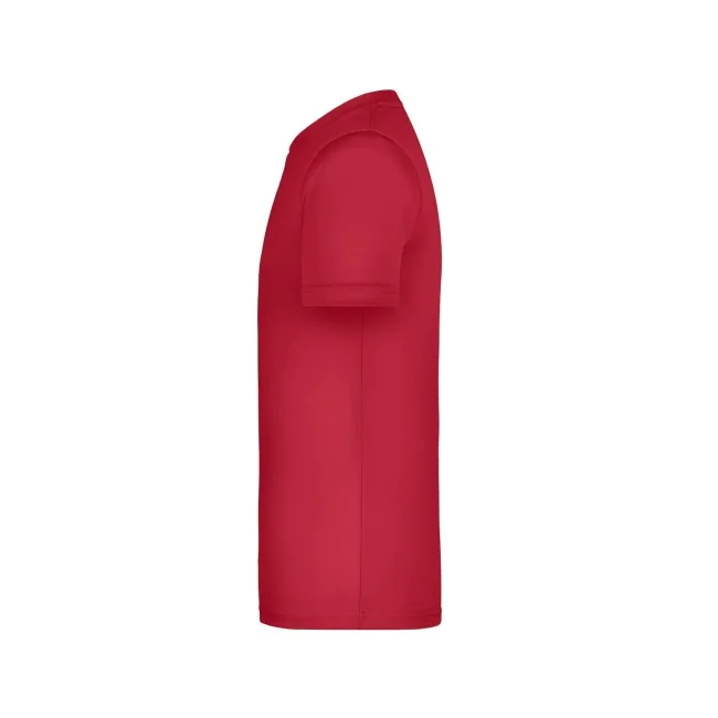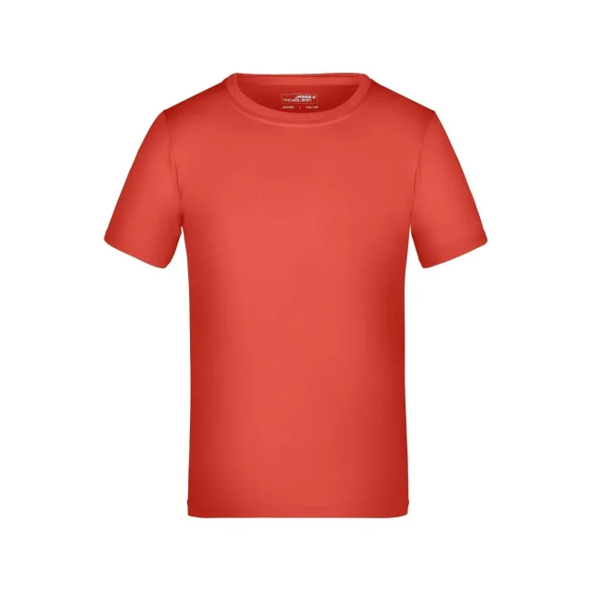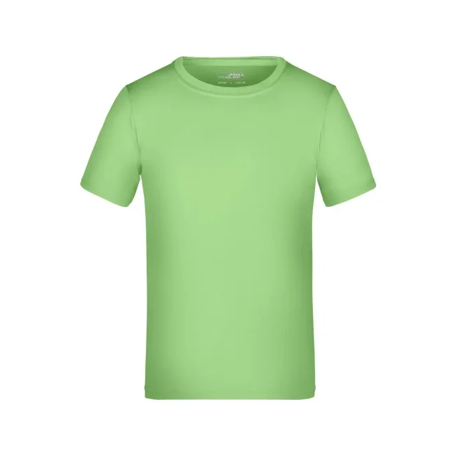 100% poliestere. T-shirt per tempo libero e sport single jersey con parasudore, cuciture doppie su spalle, collo e giro manica, traspirante, con regolazione umidità, asciugatura rapida. Tessuto esterno (150 g/m²). Manica corta, collo rotondo.