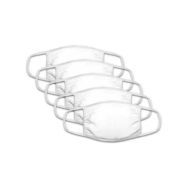 100% cotone. Tessuto morbido a tre strati, mascherina con elastico interno e laterale per una migliore vestibilita' e comfort, strato antimicrobico contenente argento per prevenire batteri e odori. Dimensioni: 17,5x12,5 cm. Area stampabile: 13 x 9 cm. Ogni confezione contiene 5 mascherine. (Prezzo per singola mascherina).
