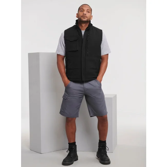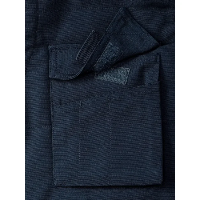 65% poliestere, 35% cotone. Gilet resistente, caldo e imbottito, varie tasche pratiche, leggermente più lungo nella parte posteriore, conforme a ISO EN26330/105 C06/12945. Marchio CE, trattamento antimacchia con DuPontTM Teflon.