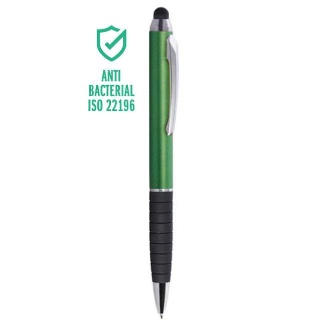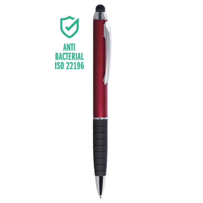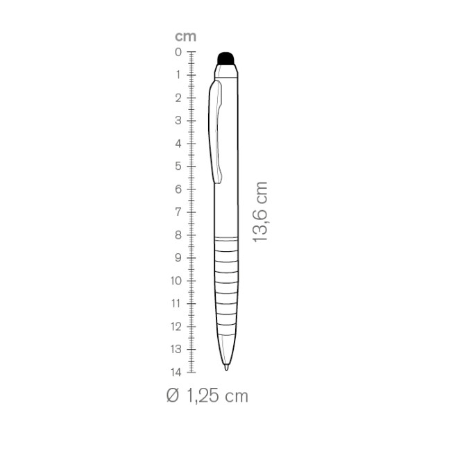 penna a sfera con gommino per touch screen meccanismo a rotazione grip in gomma minuterie in metallo cromato refill con sfera al tungsteno inchiostro nero tecnica di stampa consigliata: serigrafica - tampografica - UV