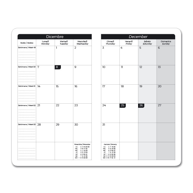A partire da 100 pezzi possibilità di personalizzazione sulla copertina dell'interno