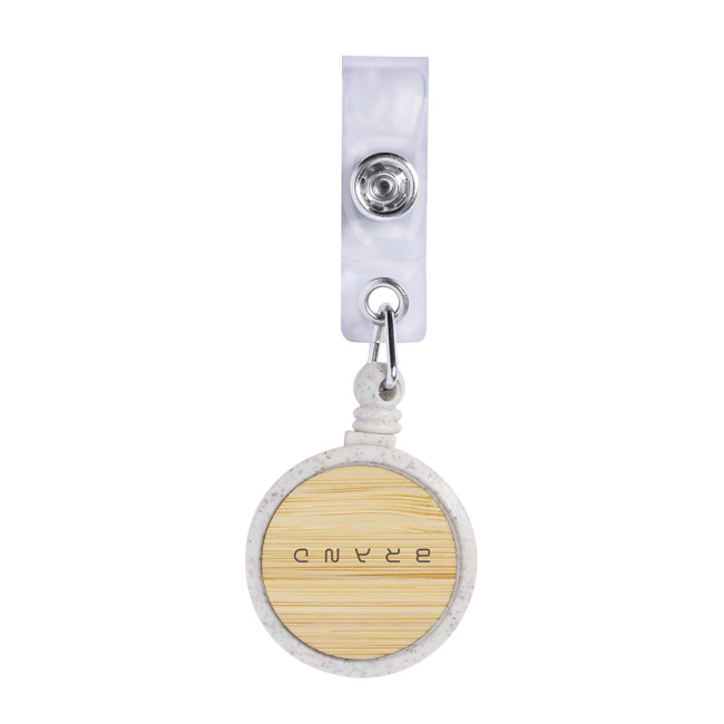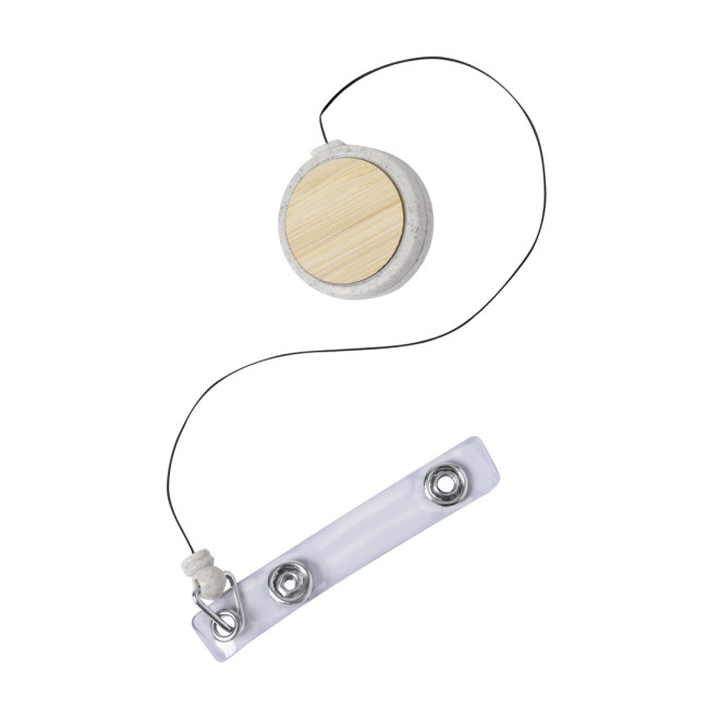 Portabadge estensibile in bambù e fibra di grano. Con cinghia di chiusura a bottone e meccanismo estensibile fino a 70 cm. Include una clip posteriore in metallo per il fissaggio. Con ampia superficie di stampa sulla parte centrale in bambù. Confezionato singolarmente in un sacchetto riciclato. Materiali come il bambù favoriscono l'uso di materie prime naturali, riducendo le emissioni inquinanti. Proviene da una pianta altamente resistente e versatile, con una crescita e una rigenerazione rapida, rappresentando un'ottima alternativa all'uso del legno tradizionale
