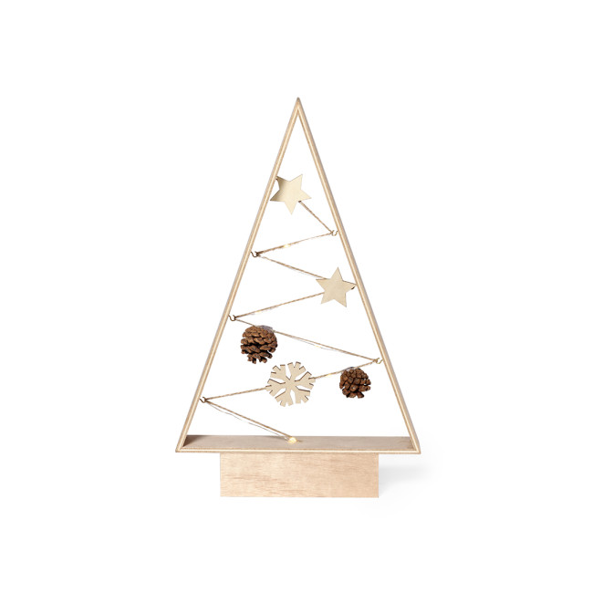 Albero di Natale moderno ed elegante in legno naturale. Un originale complemento decorativo che comprende decorazioni in materiali naturali, tutti illuminati da un intreccio di led, ideali per creare un'atmosfera accogliente. Con un semplice manuale in inglese e spagnolo.Realizzato con elementi vegetali per promuovere l'uso di materie prime naturali e ridurre le emissioni inquinanti.
