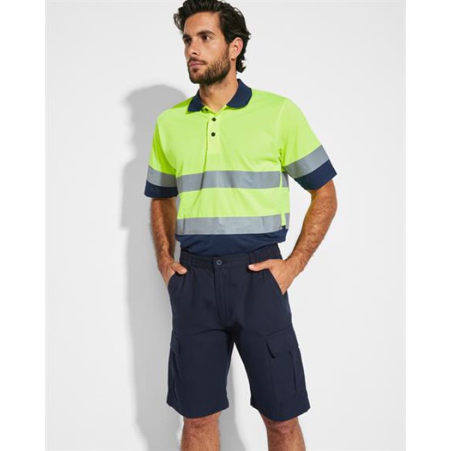 Bermuda con tasche.· Girovita con elastico regolabile nei lati. · Due tasche frontali.· Due tasche laterali con patta e chiusura in velcro.· Due tasche posteriori con bottone.