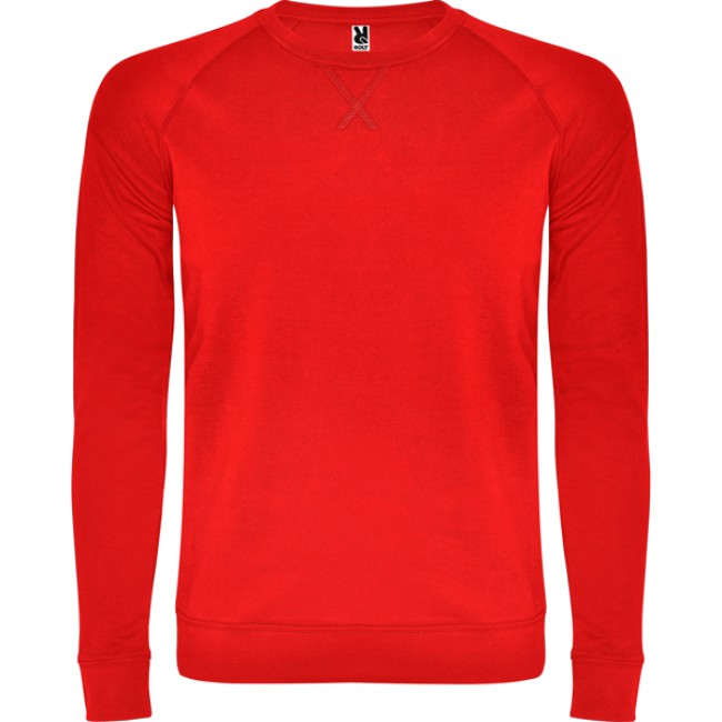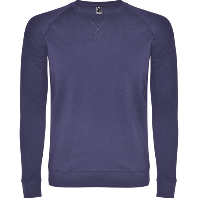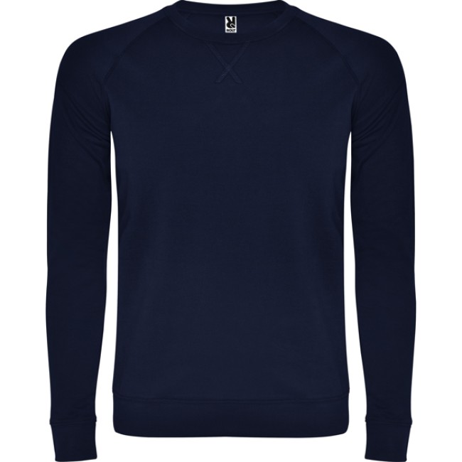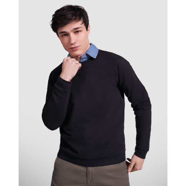 Felpa a maniche lunghe in cotone stile raglan. Con colletto, polsini e girovita, in costina 1x1.Girocollo con cuciture di decorazione incrociate e copri cuciture di rinforzo all'interno del collo.