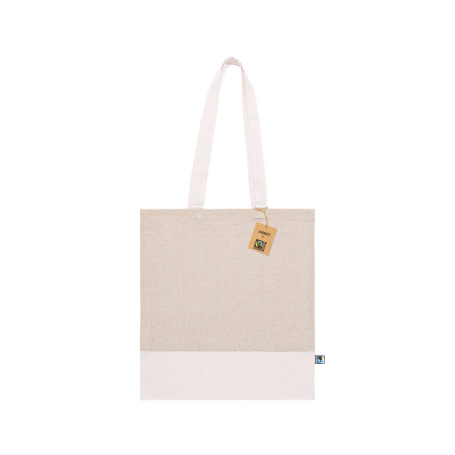 Borsa della linea natura, realizzata in cotone 140g/m2. Certificato Fairtrade, un sistema di commercio solidale e alternativo al commercio convenzionale che persegue lo sviluppo dei popoli e la lotta alla povertà. Finitura cucita e manici lunghi rinforzati con base in tonalità naturale e fronte superiore disponibile in nero e tonalità naturale. Include etichetta Fairtrade e cartellino su cartone riciclato.