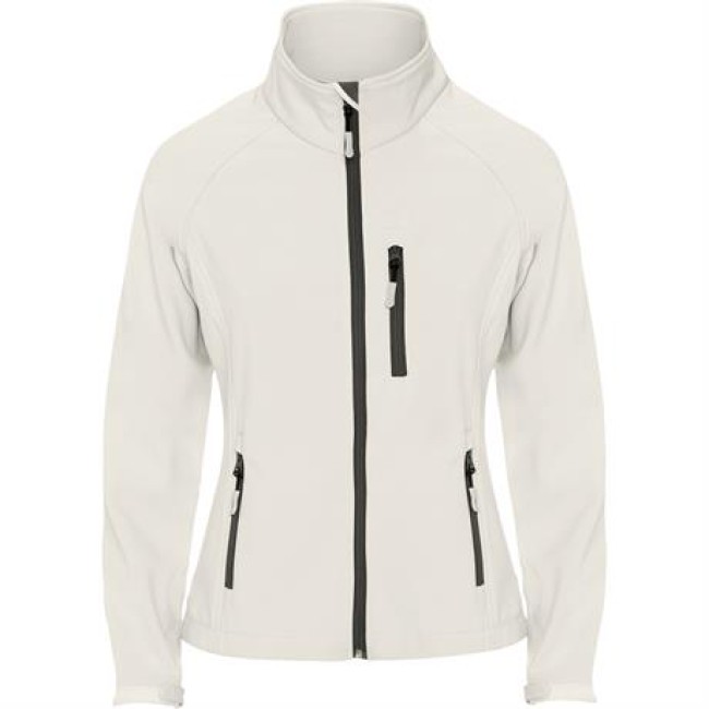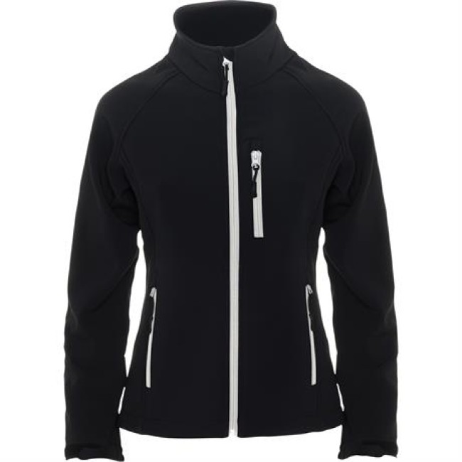 Soft shell donna a doppio strato. Cerniera invertita effetto sigillato, protezione per il mento e tirante.Tre taschini esterni con cerniera e tiretto.Regolatori sul polso con velcroElastico con regolatore nel girovita