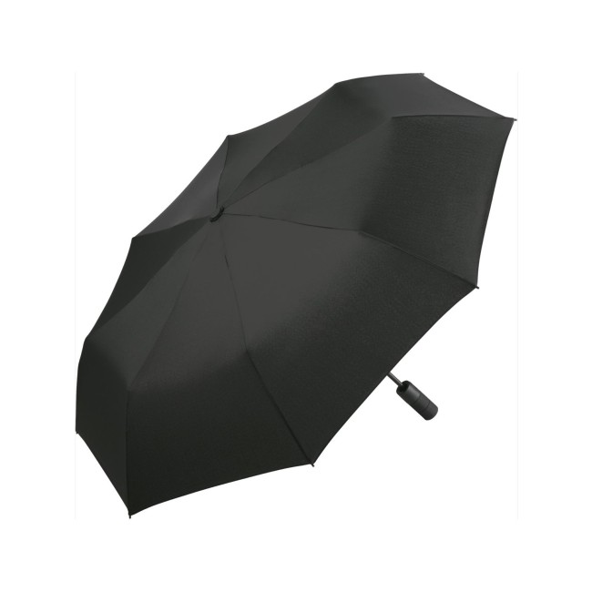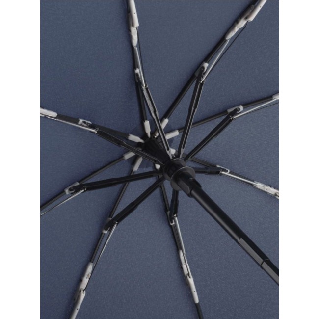 Copertura: 100% poliestere, manico: plastica, asta: acciaio. Ombrello mini con apertura e chiusura automatica, stecche flessibili in fibra di vetro con giunture grigie, manico nero soft-touch con copertura con bottoncino. Diametro: 97 cm, lunghezza da chiuso: 31 cm, 8 pannelli.
