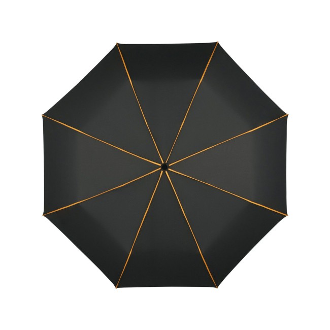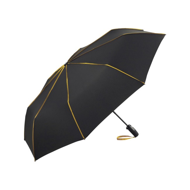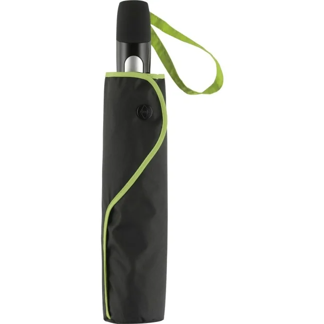 Copertura: 100% poliestere pongee, manico: plastica, asta: acciaio. Ombrello con meccanismo automatico di apertura/chiusura, sistema antivento per la massima flessibilità del telaio in caso di temporali, pannelli con strisce di colore contrastante, manico opaco/lucido con pulsante integrato e cinturino colorato, opzione di etichettatura promozionale. Diametro: 104 cm, lunghezza da chiuso: 31,80 cm, 8 pannelli.