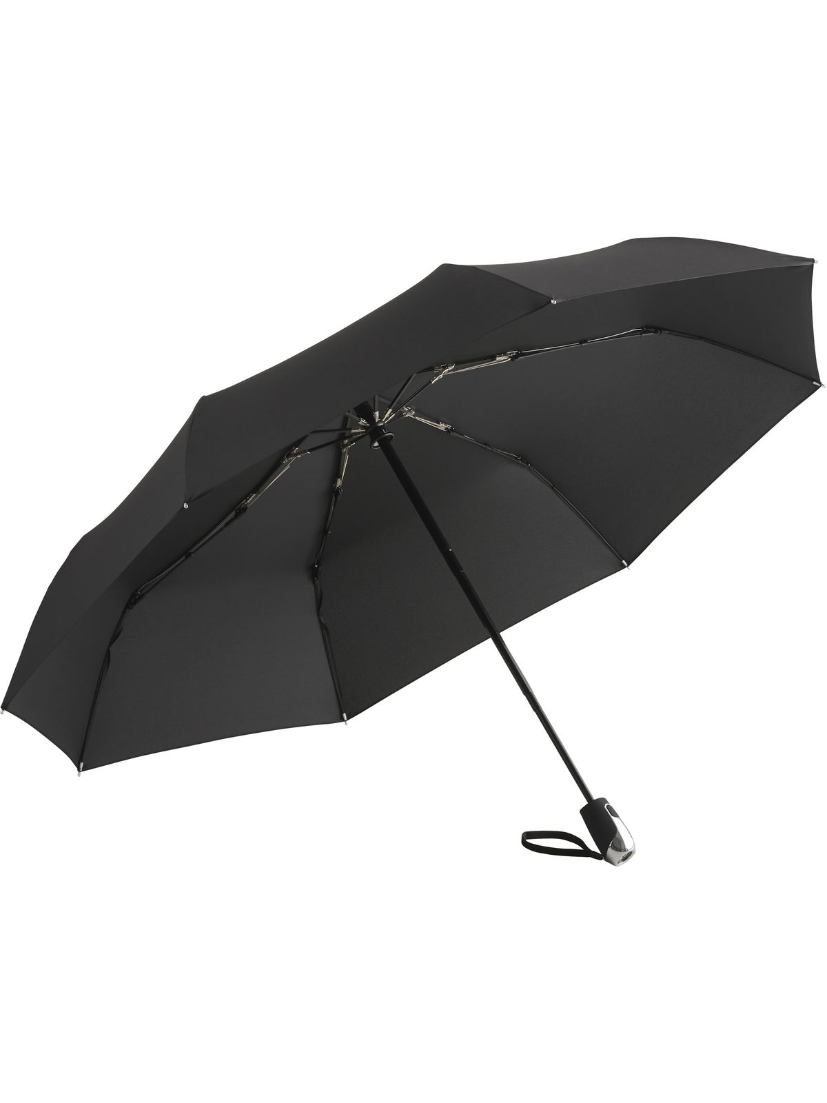 100% Polyester Pongee riciclato. Manico: plastica, asta: acciaio. Ombrello con apertura e chiusura automatica, stecche in fibra di vetro, giunti argentati, ecologico grazie alla tipologia del materiale, sistema windproof. Diametro: 105 cm, lunghezza da chiuso: 31 cm, 8 pannelli.