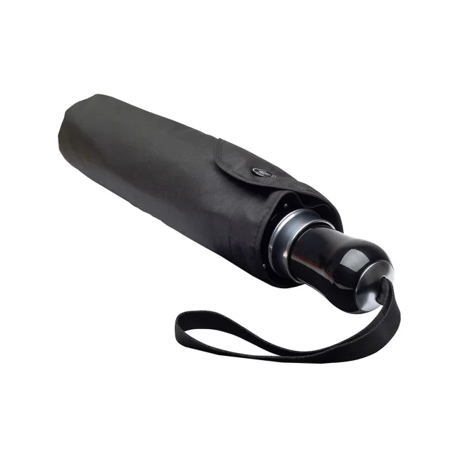 100% Poliestere pongee. Elegante ombrello tascabile con innovativo meccanismo di apertura e chiusura. Confortevole doppia funzione automatica RingOpener per apertura e chiusura rapide tirando giù l'anello, pregiato sistema Windproof per la massima flessibilità del telaio, anche in caso di forti raffiche di vento, materiale di copertura in poliestere pongee di plastica riciclata, ecologico grazie al materiale della fodera waterSAVE®, punte metalliche argentate, manico lucente nero con applicazioni cromate e passante in tessuto, nastro di chiusura e custodia con pulsante. Diametro ombrello: 107 cm, lunghezza chiuso: 31 cm, 8 pannelli.