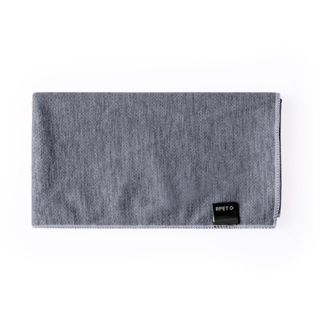 Asciugamano assorbente in RPET con peso di 160g/m2 e formato 50x100 cm. Presentato in un sacchetto individuale in rete RPET, con retro liscio. Il materiale RPET è realizzato con plastica riciclata, promuovendo il riutilizzo dei rifiuti plastici e contribuendo alla sostenibilità del pianeta.