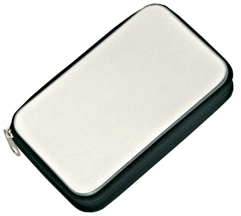 Astuccio in alluminio con chiusura a cerniera, contenente 13 accessori. Con dimensioni di 10x7x2 cm quando chiuso, è un oggetto pratico e personalizzabile con logo, ideale per branding aziendale e utilizzo quotidiano.