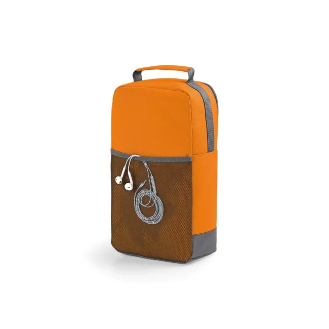 100% Combinazione 600d/420d poliestere. Contenitore per scarpe con occhiello in metallo, tasca in rete nella parte posteriore. Etichetta removibile. Dimensioni: 35 x 19 x 12 cm, capacita': 8 litri, area di stampa: 23 x 15 cm.