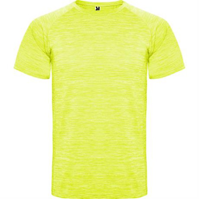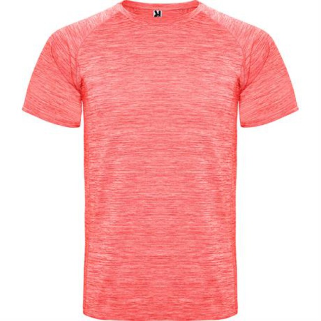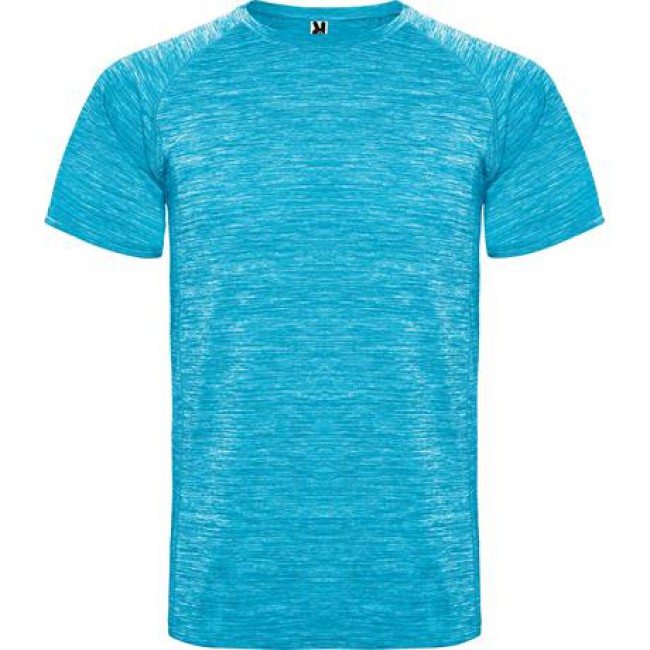 T-shirt tecnica in poliestere, maniche corte stile raglan. Girocollo. Tessuto confortevole e facilmente adattabile al corpo.