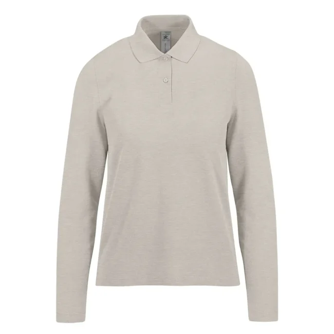 100% cotone Optimium prelavato e filato ad anello. Polo donna maniche lunghe senza tempo, classica, moderna e facile da indossare, realizzata in tessuto di alta qualità, 2 bottoni tono su tono, polsini a costine 1x1. Questo piqué fine ad alta densità offre una sensazione morbida al tatto e un'eccezionale stampabilità. Sport Grey: 90%C.10%V.- Heather burgundy/Heather blue: 80%C.20%P.- Heather tarmac: 40%C.40%P.