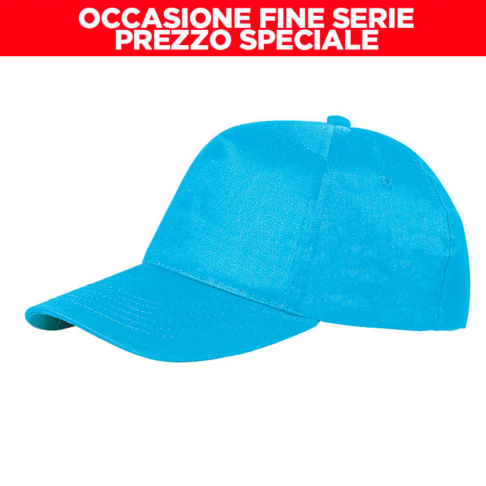cappello 5 pannelli bambino cotone twill 108/58 fascia tergisudore in colore abbinato occhielli ricamati frontalino rinforzato visiera rigida sagomata chiusura in velcro regolabile in colore abbinato colori reattivi
