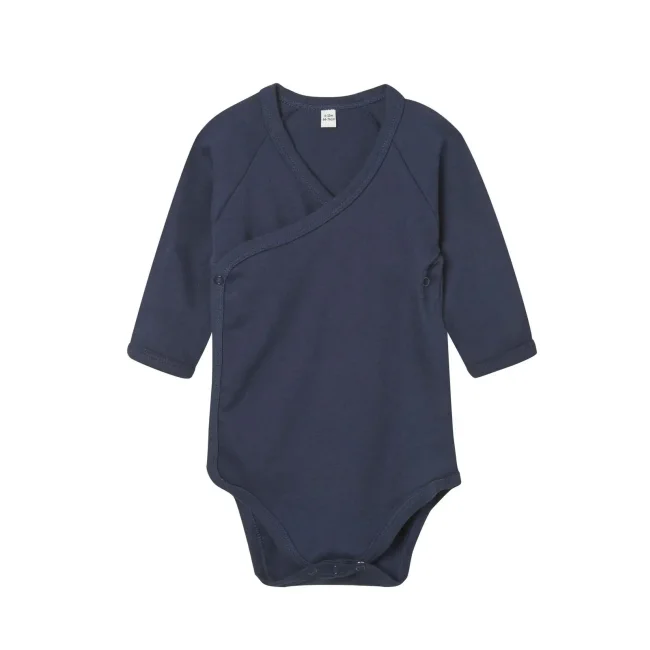 100% cotone organico. Body da neonato incrociato stile kimono, con bottoni automatici nickel-free al collo e al cavallo. Bordino intorno a collo, alle estremità delle maniche e al cavallo per mantenere la forma dell'indumento. Maniche lunghe raglan. Etichetta taglia removibile al collo. Etichetta con istruzioni di lavaggio in cotone organico.