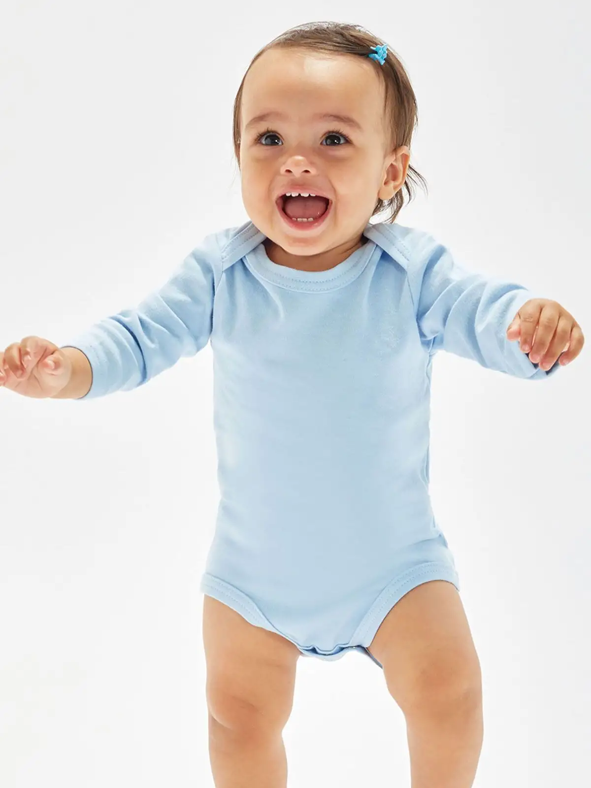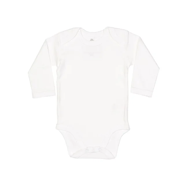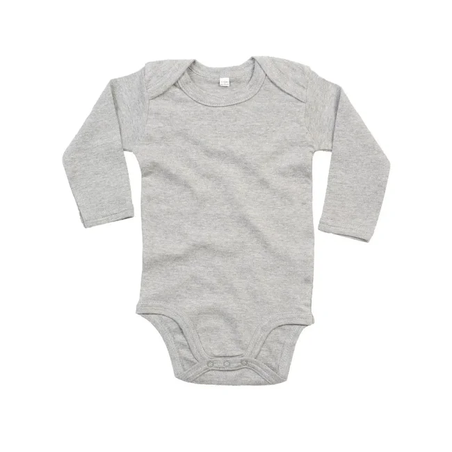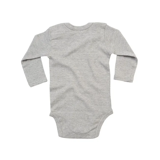 100% Cotone Organico. Body baby maniche lunghe con scollo all'americana. Chiusure a fondo manica per mantenere la forma. Tessuto morbido e elasticizzato. Bottoni a pressione ton-sur-ton sul cavallo. Etichetta strappabile. Heather Grey Melange: 85% Cot. Organico, 15% Pol.