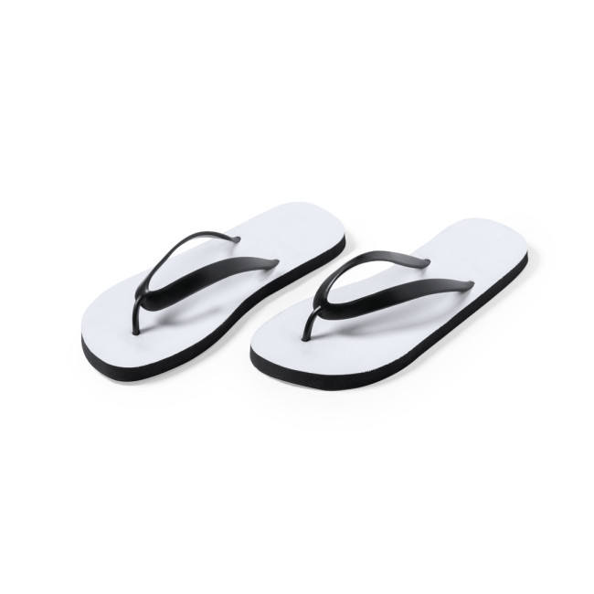 Ciabatte infradito con suola personalizzabile al 100% e appositamente progettata per la stampa in sublimazione. Con suola in EVA resistente, strisce in PVC nero e disponibile in due taglie: 36-38 e 42-44. Il set è composto da un piano in EVA sagomato per la personalizzazione.