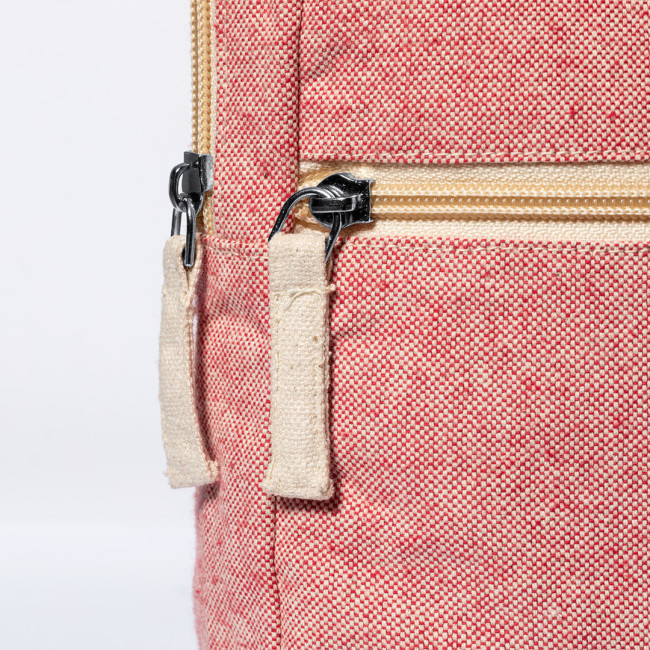 Portadocumenti della linea natura cotone riciclato GRS 275g/m2. Scomparto principale e tasca esterna con chiusura a zip ed etichetta esterna in cotone riciclato. È disponibile la certificazione GRS (Global Recycled Standard), che garantisce lorigine riciclata del materiale utilizzato per la fabbricazione del prodotto. Disponibile in unampia gamma di colori.