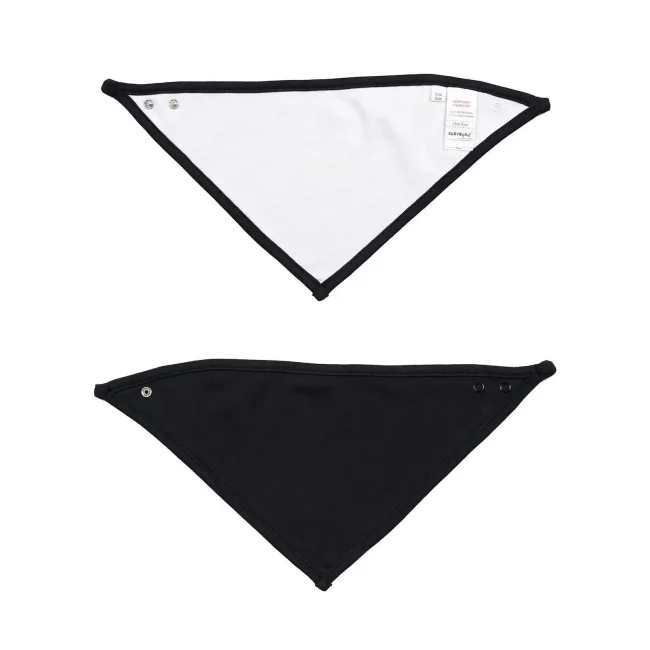 100% cotone. Bavaglino reversibile. Colore unico da un lato, due colori a contrasto dall'altro. Due bottoni a pressione sul lato posteriore del collo, posizionati sul bordo per mantenere la forma. Etichetta strappabile.