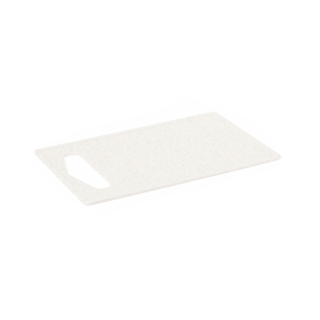 Tagliere da cucina in PP. Con manico per una presa salda, facile da pulire e da riporre. Confezionato singolarmente in un sacchetto riciclato.