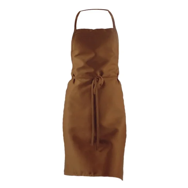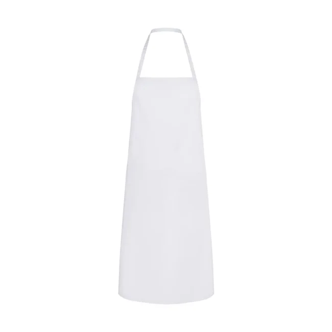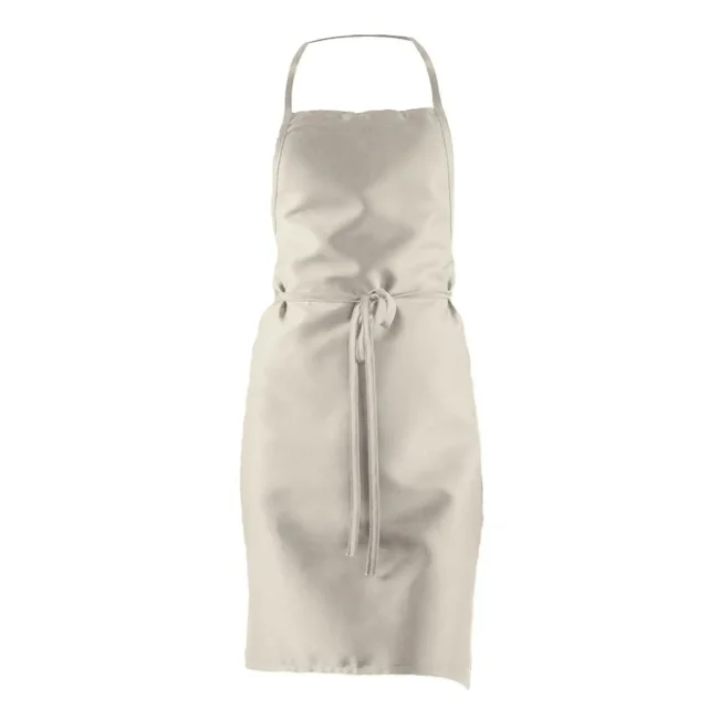 65% poliestere, 35% cotone. Grembiule comodo e avvolgente, senza tasca con lunga cintura. Lavabile a 40°C. Bianco e Natural 100% cotone.