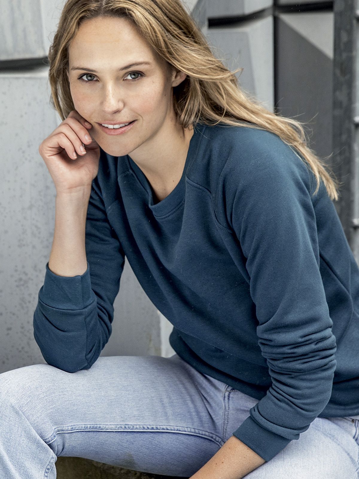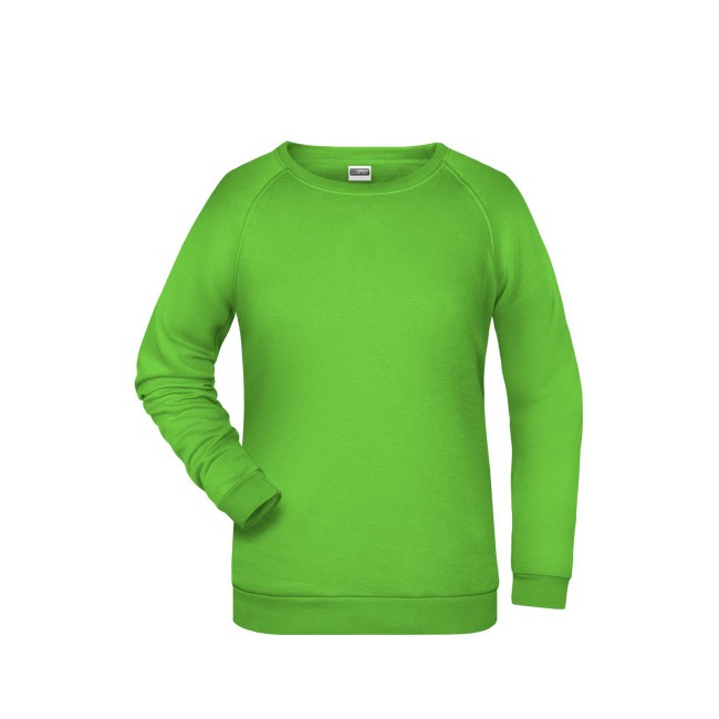 80% cotone, 20% poliestere. Felpa da donna felpata internamente con banda parasudore nel colletto, polsini con elastane. Leggermente sfiancata. Etichetta strappabile.