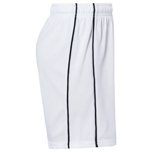 100% poliestere. Team short senza slip interno Traspirante e ad asciugatura rapida, Durevole, di facile manutenzione, leggera e confortevole. Filetti a costola con colori a contrasto,vita elastica con cordino, senza cordino.