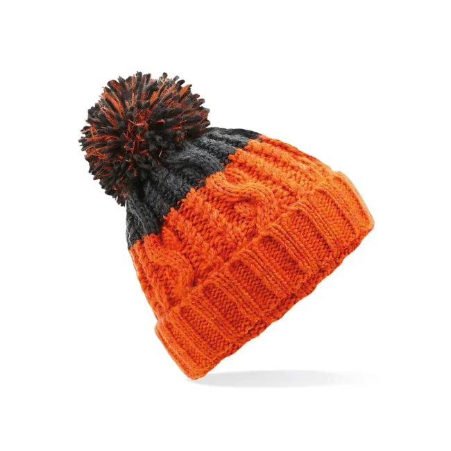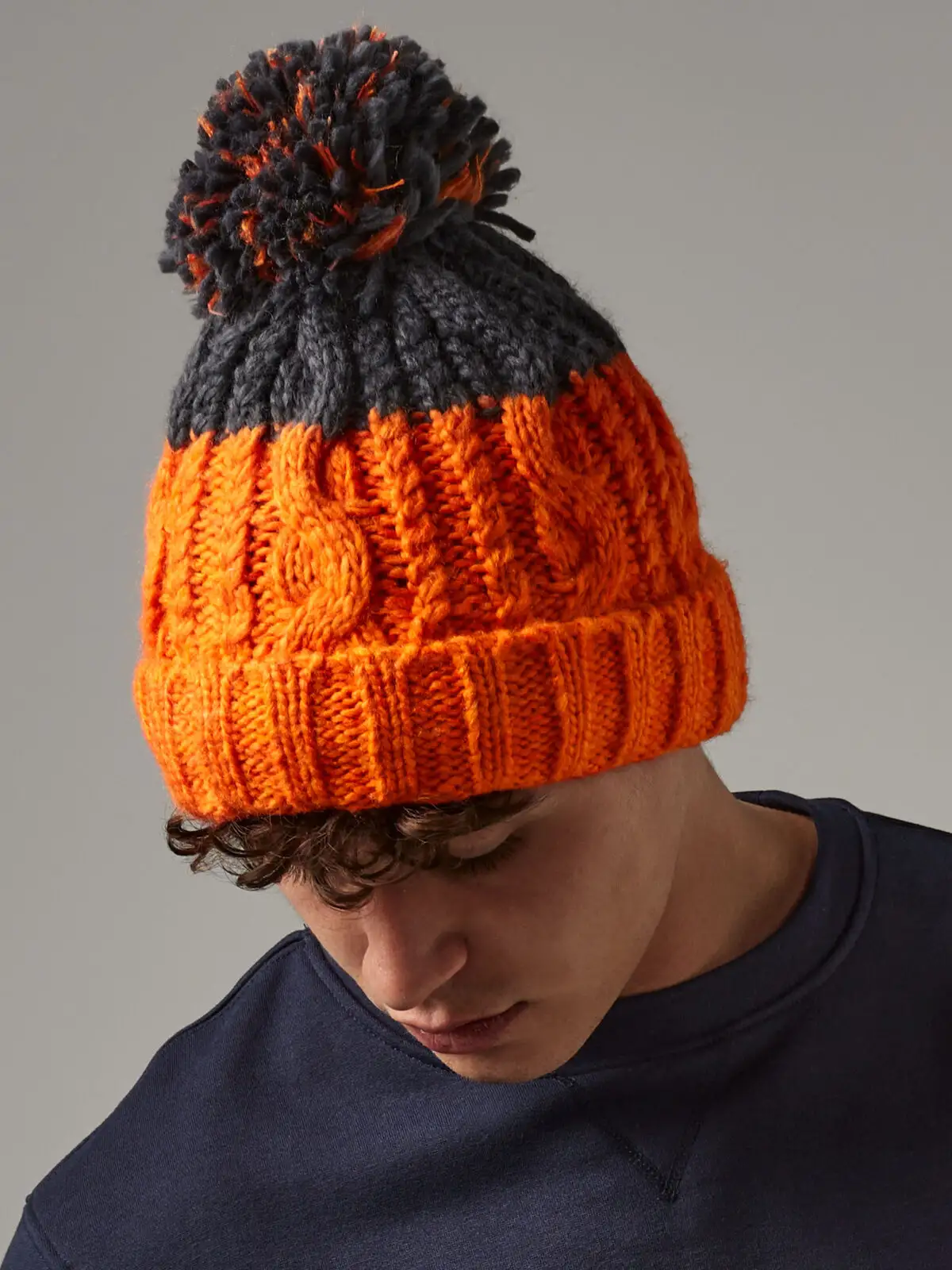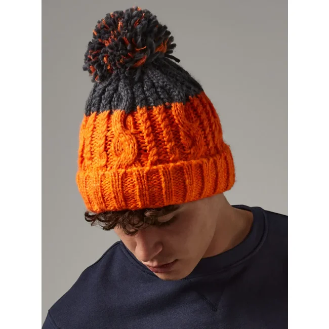 Berretto in maglia realizzato in acrilico Soft-Spun al 100%, caratterizzato da più filati pesanti e un pon pon. Il design a risvolto e la fascia termica in shearling garantiscono calore e comfort, con etichetta removibile per un facile rebranding.